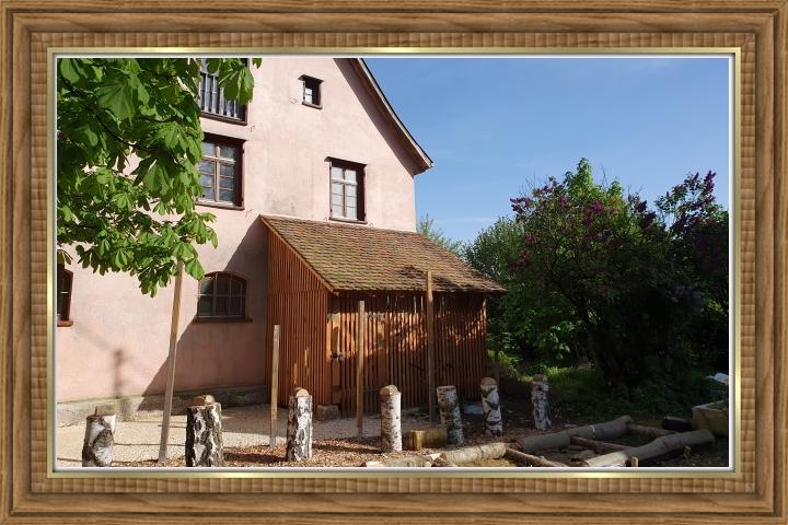 Holzschuppen auf der Westseite des Hauses